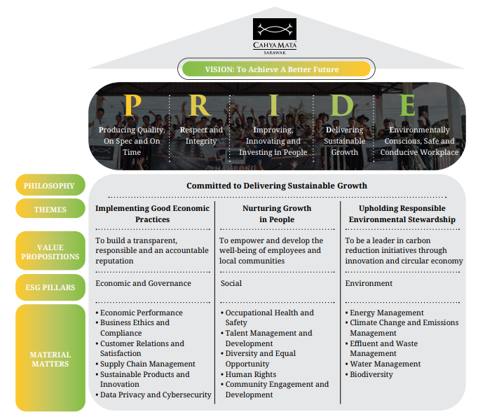 Cahya Mata recognises the importance of sustainability for both our Group’s success and our stakeholders’ well-being. Guided by our vision “To Achieve A Better Future,” we are committed to integrating Environmental, Social, and Governance (ESG) principles into our operations to ensure long-term, sustainable growth.